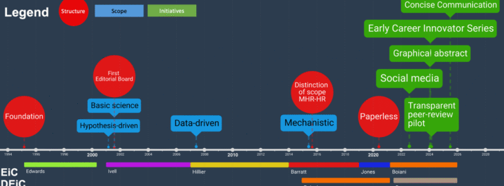 Meantime, almost 30 years and five Editors-in-Chief (EiCs) have passed: Richard Ivell (2000โ2006), Stephen Hillier (2007โ2012), Chris Barratt (2013โ2018), Keith Jones (2019โ2021) and me (2021 to date). After Edwardsโ Herculean task of getting MHR off the ground, the subsequent EiCs had the equally difficult task of keeping the Journal in step with the evolving needs and challenges of the different times. The second EiC, Richard Ivell, equipped MHR with an Editorial Board of Associate Editors and defined a structured manuscript workflow that essentially still exists today. Ivell also gave MHR the spirit that still distinguishes it today, namely as a journal for publishing basic science conducted in humans and animal models. The terms that appeared more frequently in the titles of MHR papers published in 2006, the last year of Ivellโs term, were โhumanโ and โgene expression,โ as well as โendometrium,โ โpregnancy,โ and โpreeclampsiaโ โ but still no animals.